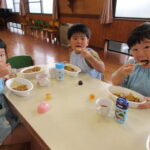 先生たちが作ったカレーや朝ごはんをみんなで食べたりなど