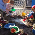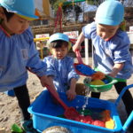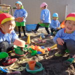 追いかけっこをしながら走り回ったり、砂場でご飯やデザートを作ったりと