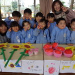 みんなで作った色とりどりのすてきな品物を目の前にして