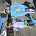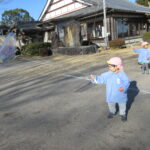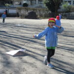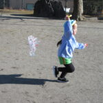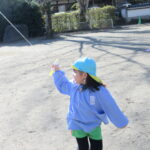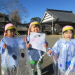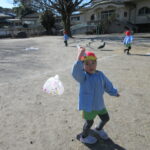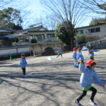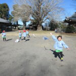 たこあげでした! [2025年01月16日] 三学期がスタートして一週間ほどが経ちましたが 寒さをものともせず、お外で元気に遊ぶ子ども達です! 先週の金曜日は、昔ながらのお正月のあそび「たこあげ」を 境内でしました。 冬休みの間に各家庭で作っていただいたたこを持ち寄って クラスごとに挑戦しましたが、おかげさまでほどよく風もあったせいか けっこう高く上がるたこも多く、大きな歓声を上げる子ども達でした! おうちでもまた、親子で遊んでみてくださいね! ◎一覧を表示する ◎管理者