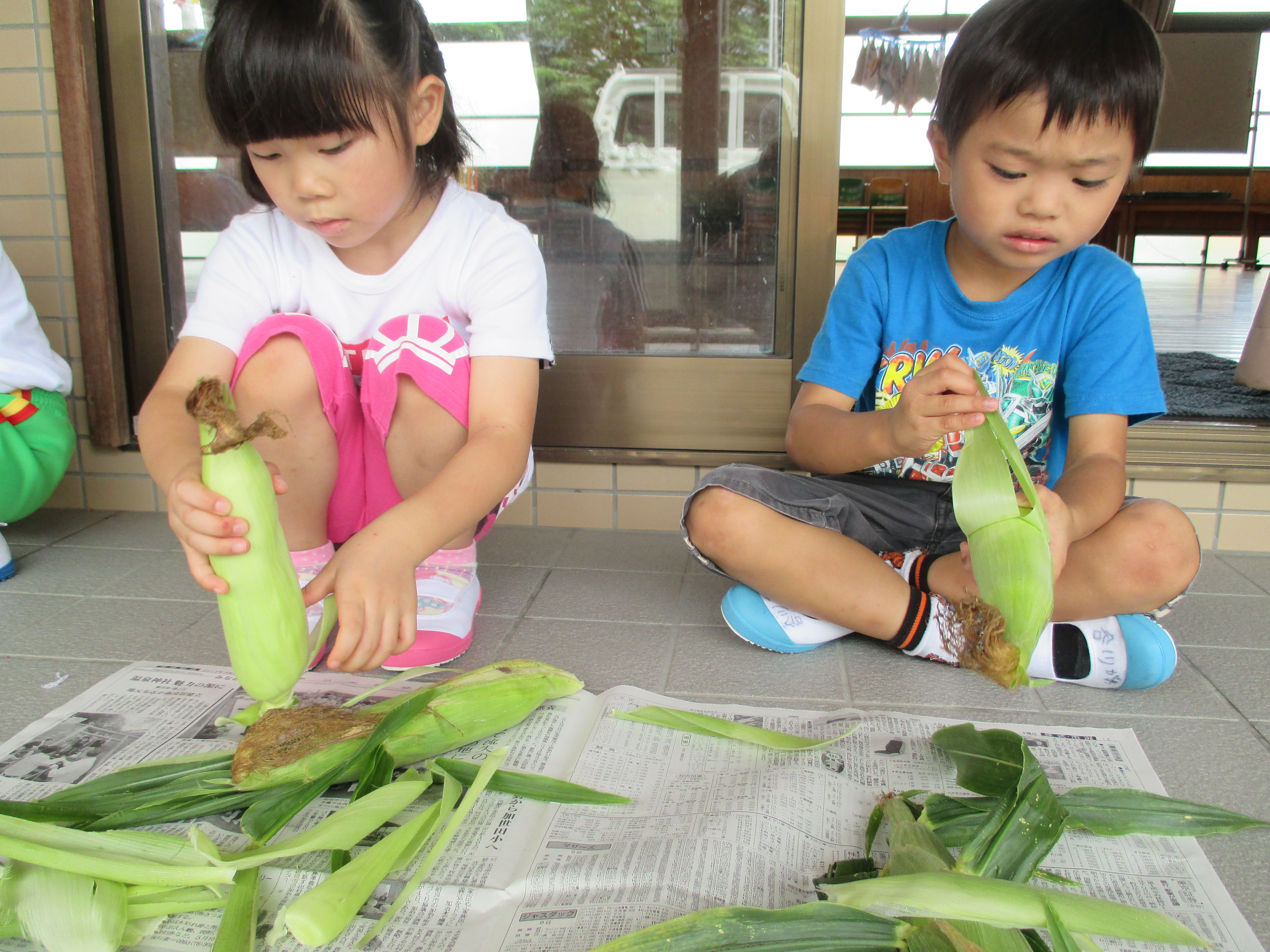 とうもろこしの収穫・たんぽぽ団でした