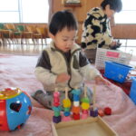 できあがったたこを園庭で飛ばしたり、ホールで好きなあそびをしたりと