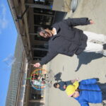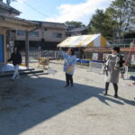 寒さで固まった体を動かして、温めていました。