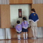 令和4年度がスタートしました! [2022年04月06日] 今日は、令和4年度一学期の始業式でした。 新しいクラス色のネームをつけてもらい、とてもうれしそうな子ども達。 進級したよろこびをみんなで分かち合っていました。 仏参と始業式では、久しぶりの登園のお友達もいましたが とても落ち着いて取り組むことができました。 これから一年間、いろいろなことに挑戦しながら 元気いっぱいにたのしく過ごしていきたいと思います。 一人ひとりの成長が楽しみですね! 一年間どうぞよろしくお願いします! ◎一覧を表示する ◎管理者