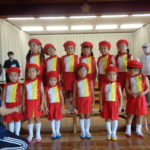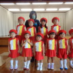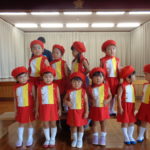 先日の運動会以来に鼓笛服を着た子ども達は、少し緊張した表情ながらも