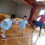 初めてのお友達にとっては、「よーい!」の姿勢をとることが難しいようでしたが