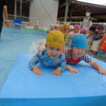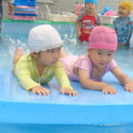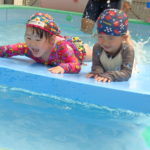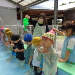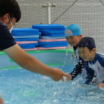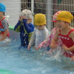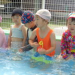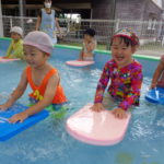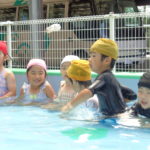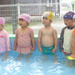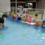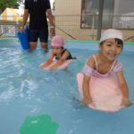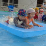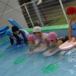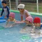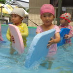 体育あそびでした! [2022年06月25日] 昨日24日(金)は、体育あそびがありました。 今回もプールでしたが、朝から蒸し暑いこともあって とても気持ちよさそうに、笑顔で歓声を上げる子ども達。 ビート板を上手に使って、意欲的に楽しんで活動することができ どのクラスもとても満足そうな表情でした! 7月を間近に控え、いよいよ夏本番です。 熱中症対策に十分気を配りながら、元気に楽しく過ごしたいと思います! ◎一覧を表示する ◎管理者