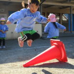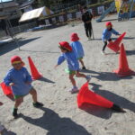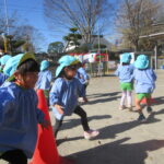 冷たい風が吹く中での体育あそびでしたが