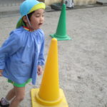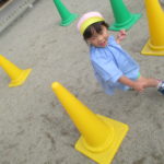 ポールの間をジグザグに走ったり、倒したポールをジャンプして飛び越えたり、持って運んだりと