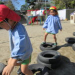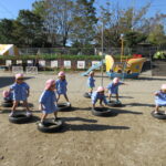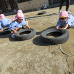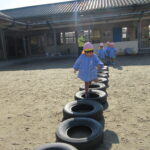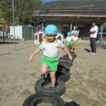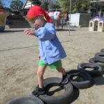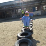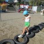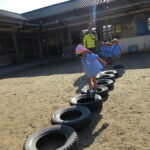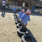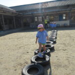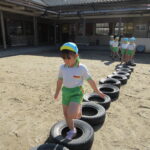 それぞれバランス棒とタイヤを使っての活動でしたが