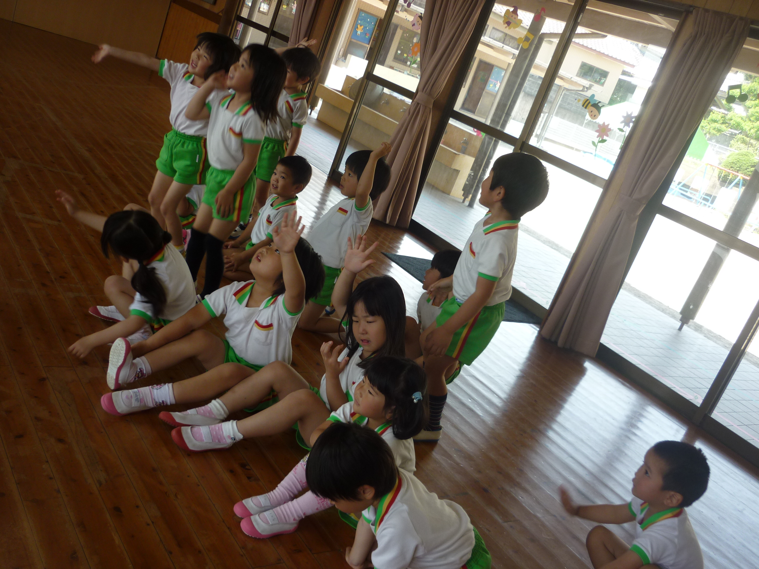 でんぐりがえしをしたりひざ立ちで前に進んだりと、普段あまりしない動きでしたが