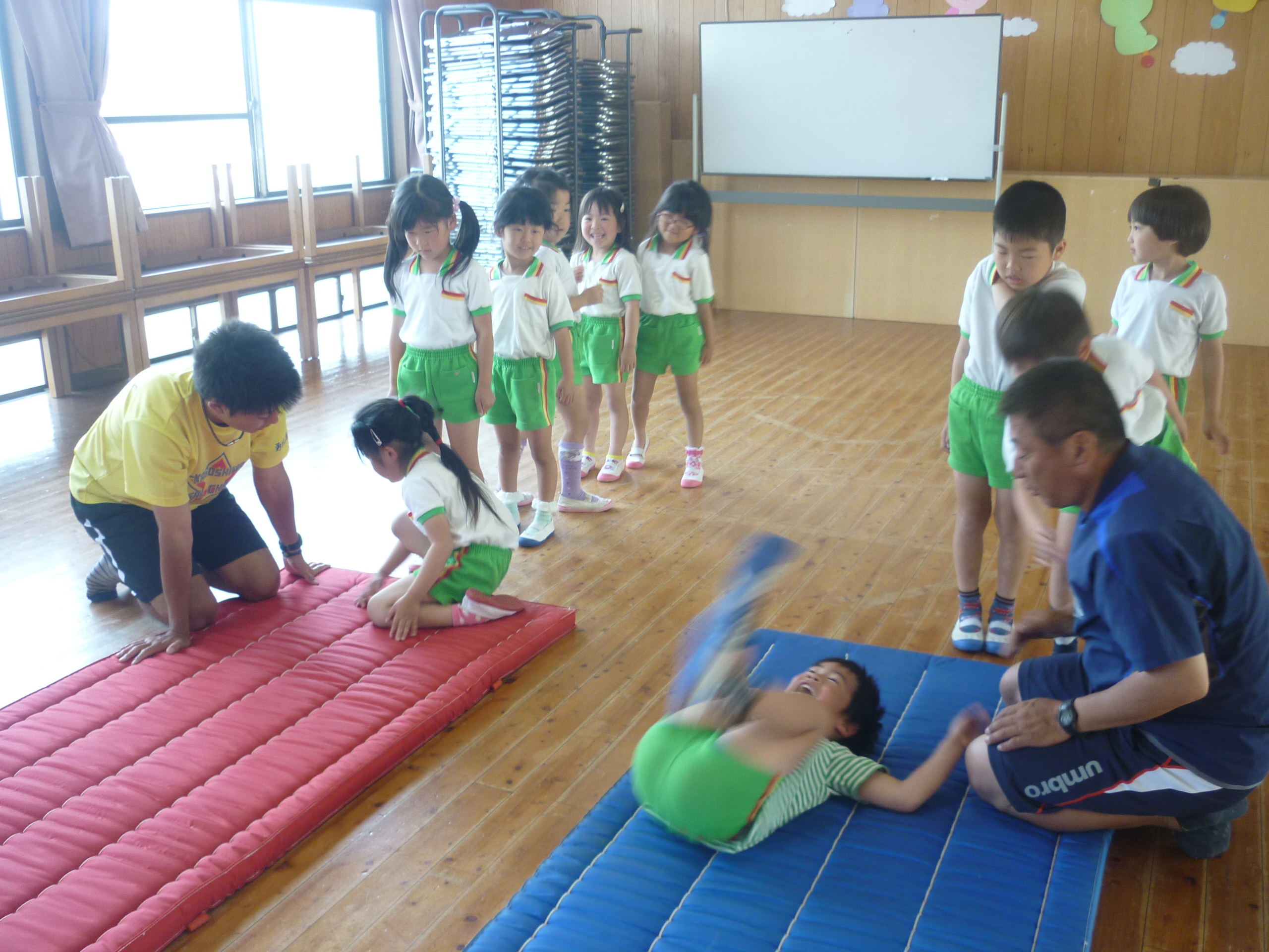 先週金曜日は体育遊びで、マット運動をしました。