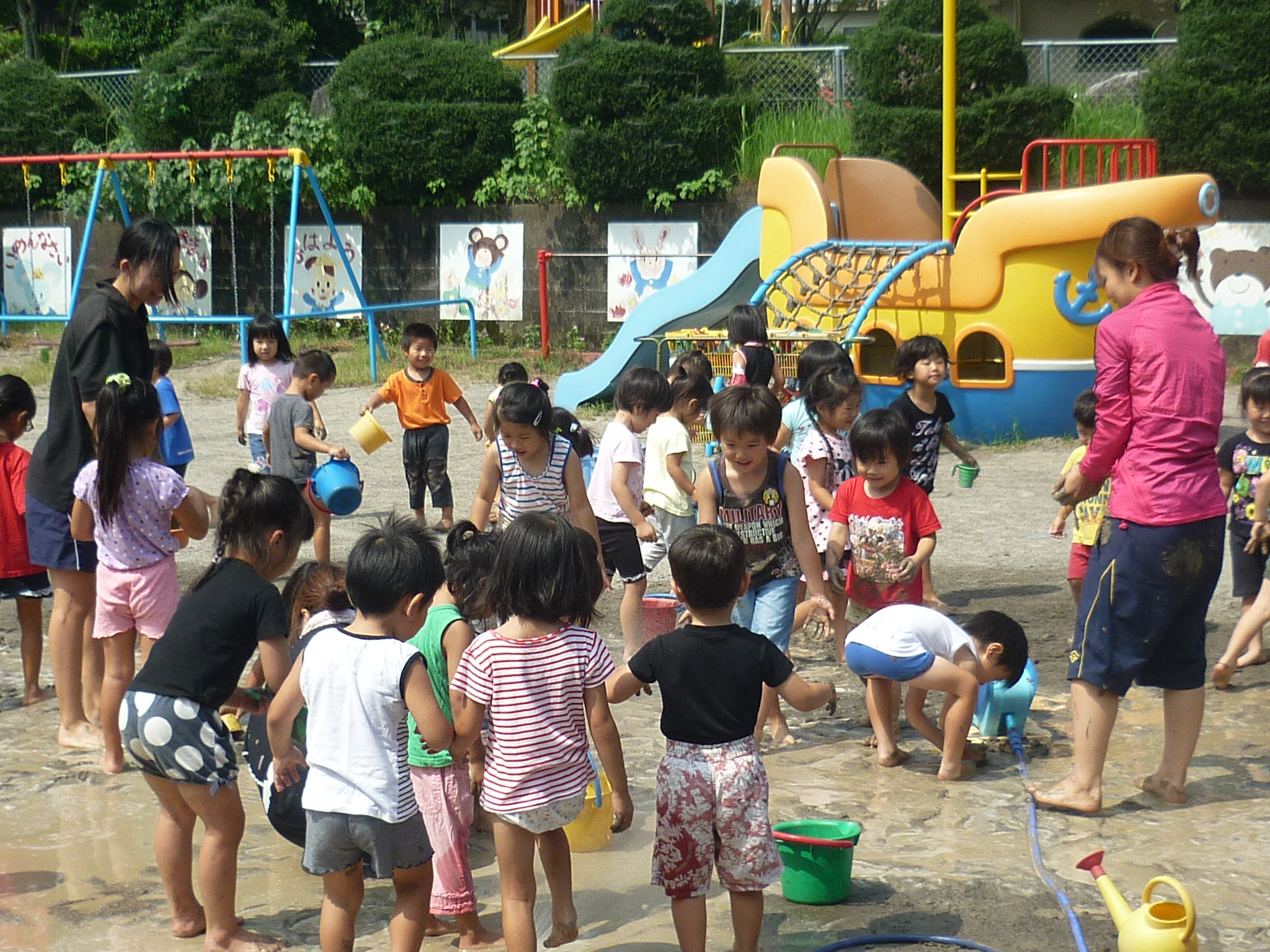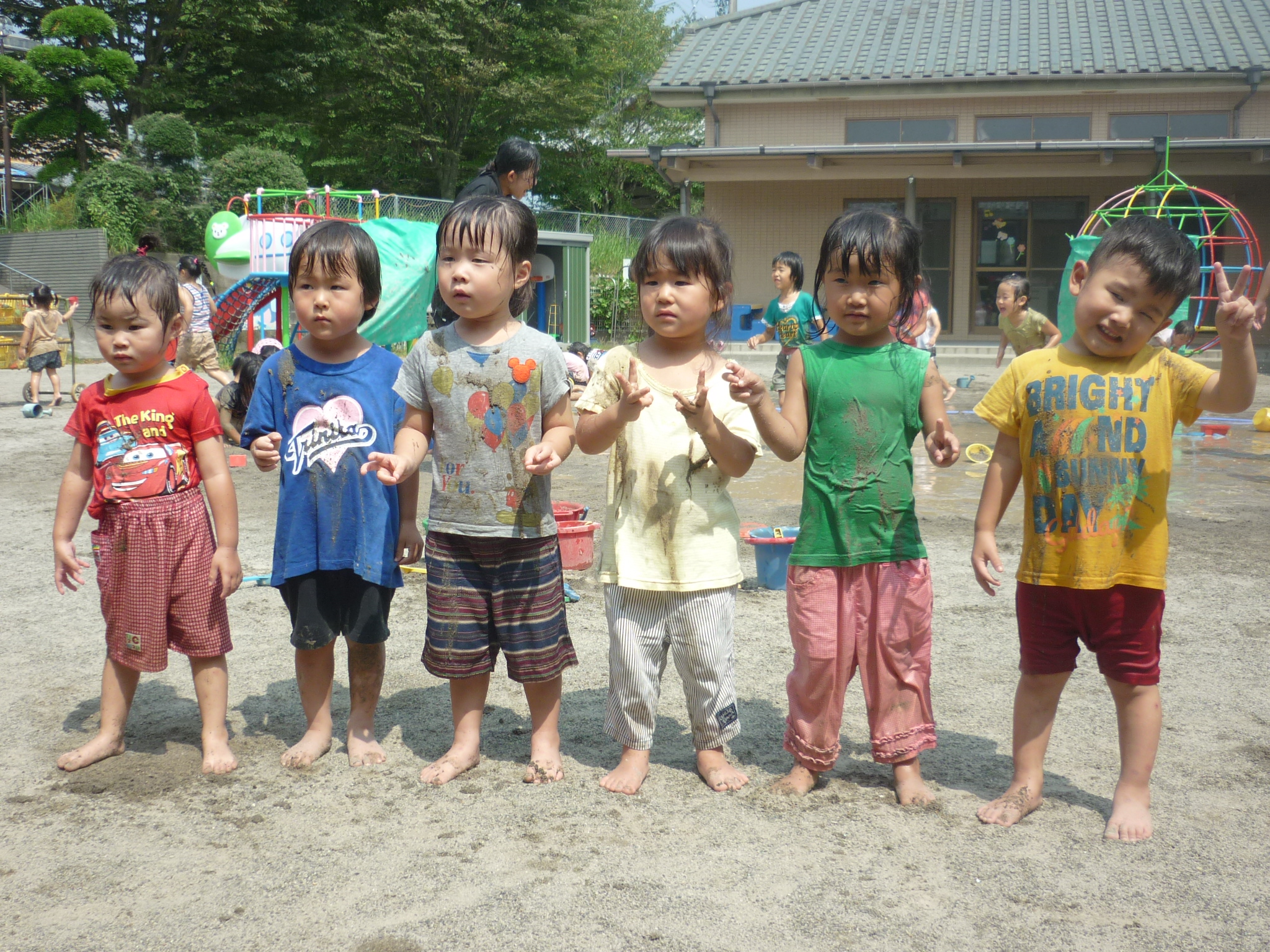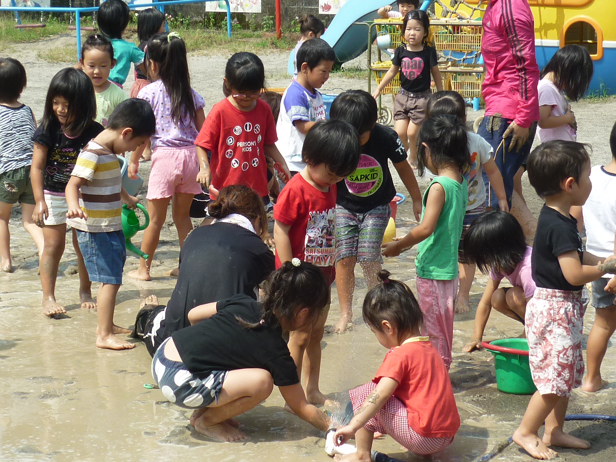 公園に遊びに行ったり、泥んこあそびで泥だらけになったり、ヨガをしたり