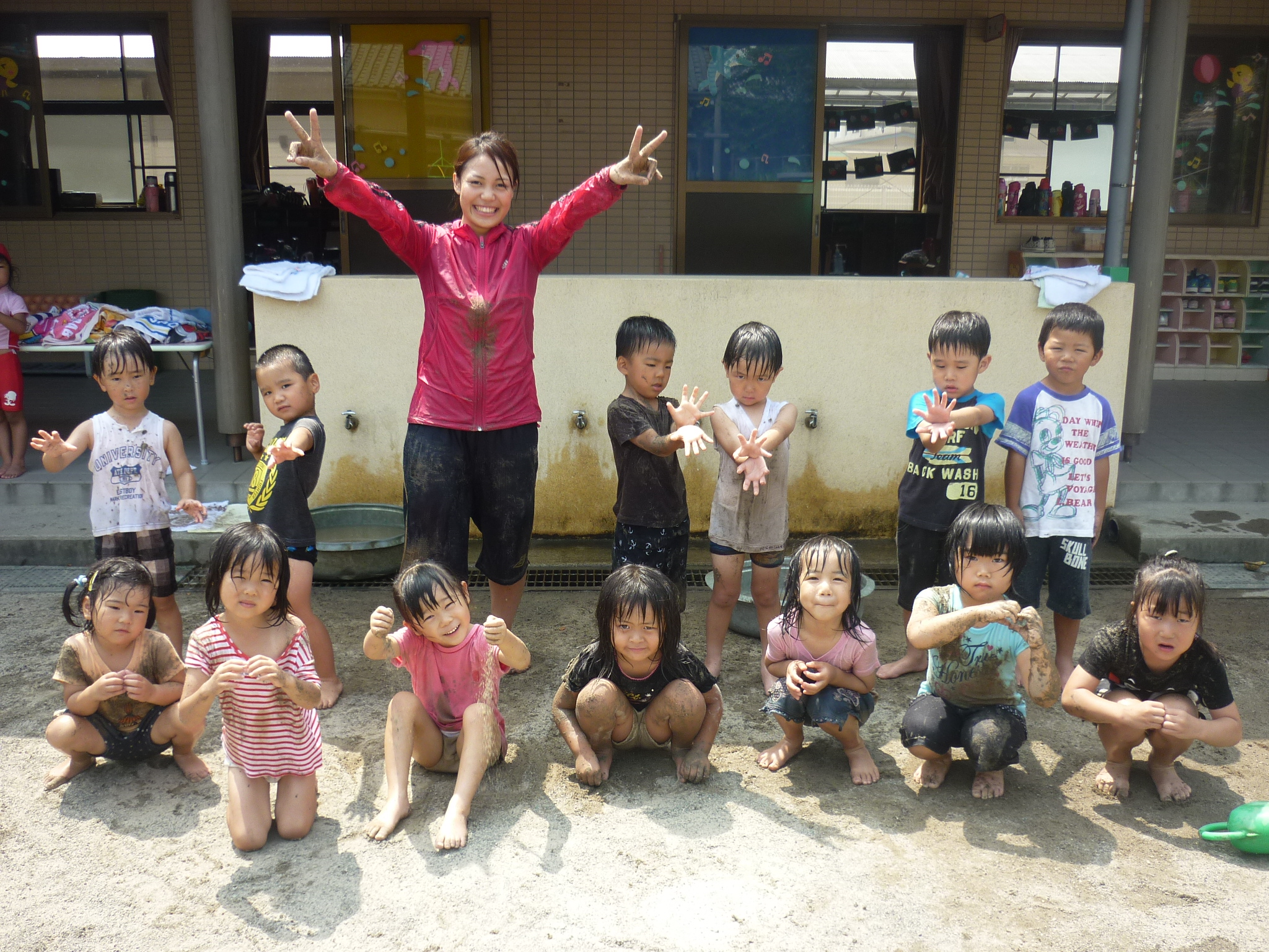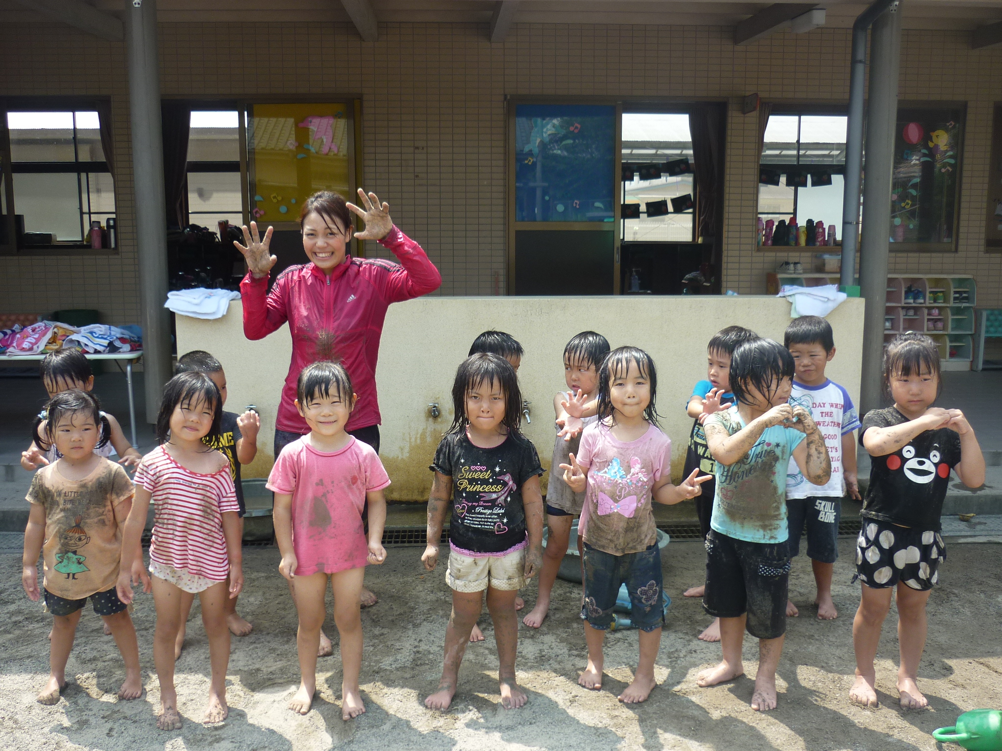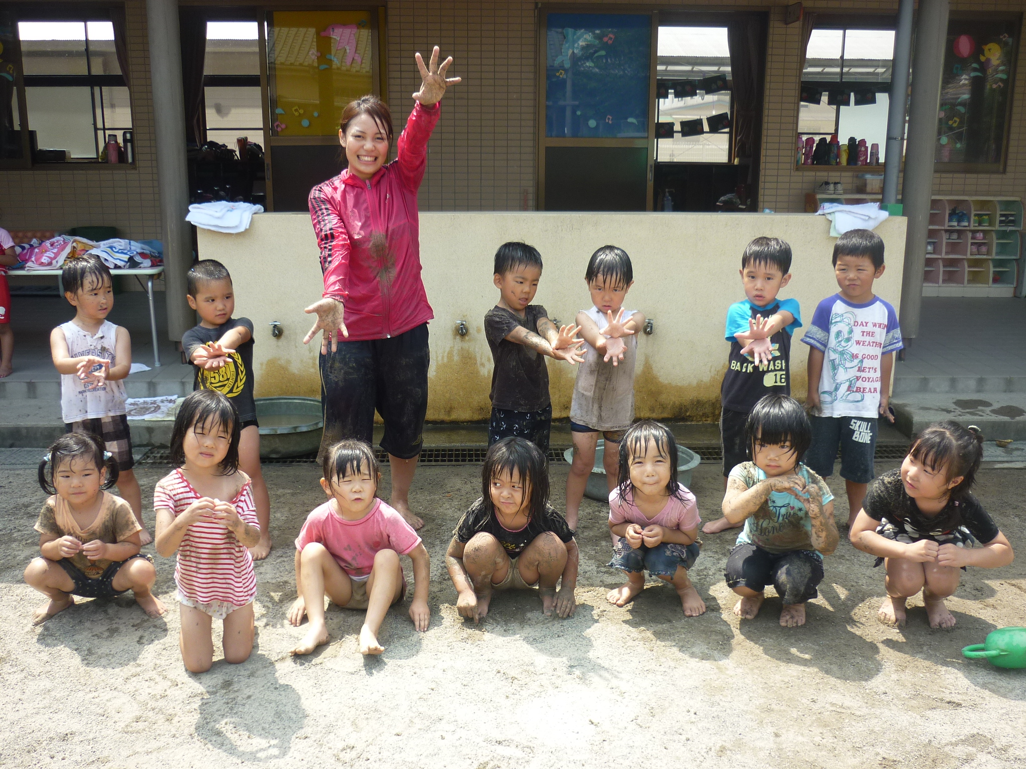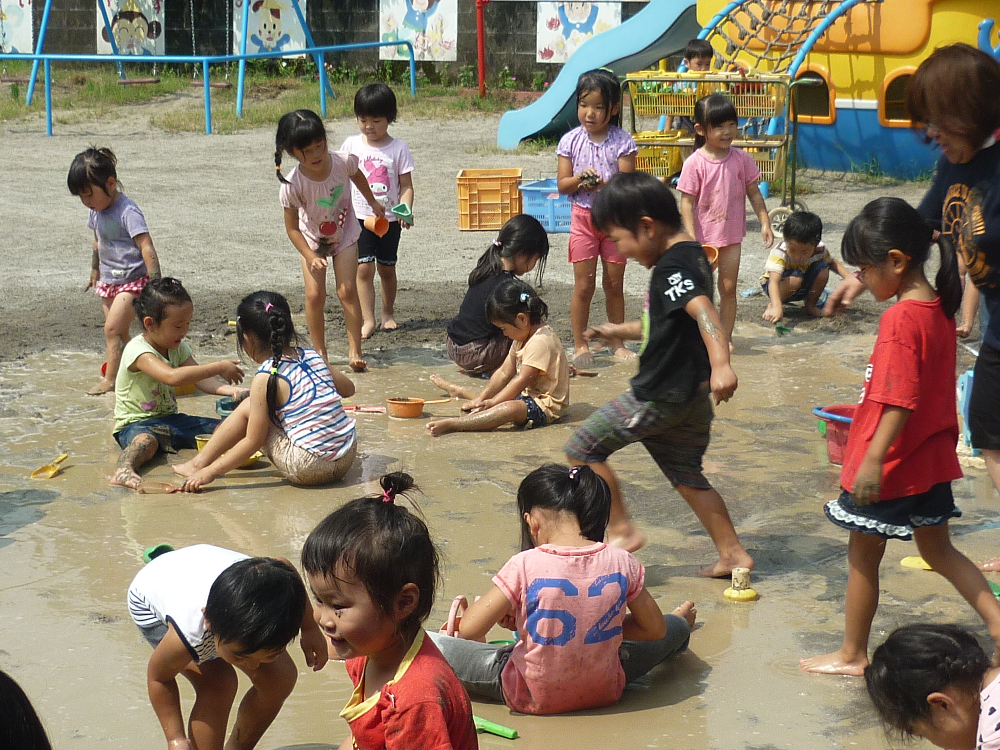 公園に遊びに行ったり、泥んこあそびで泥だらけになったり、ヨガをしたり