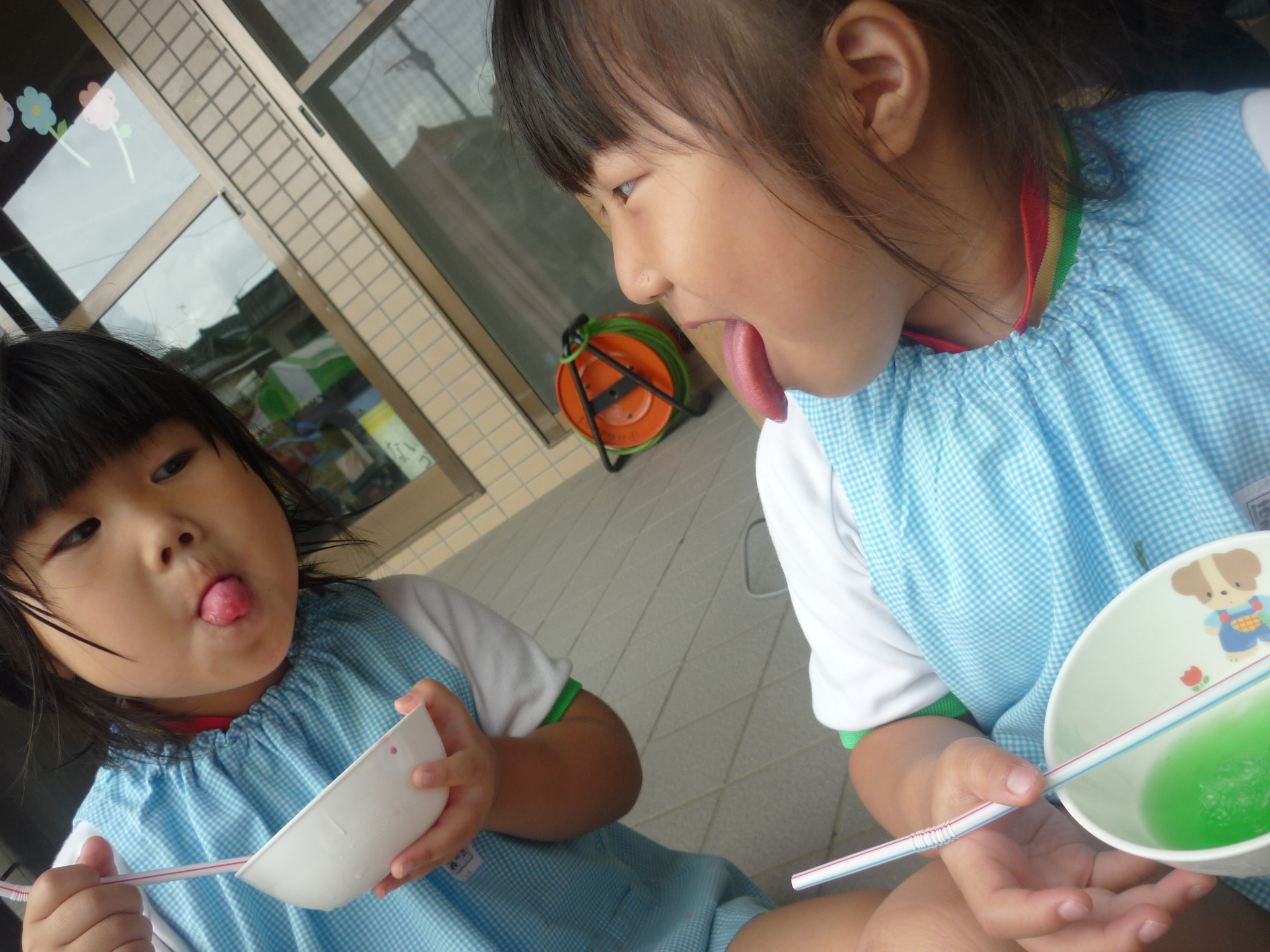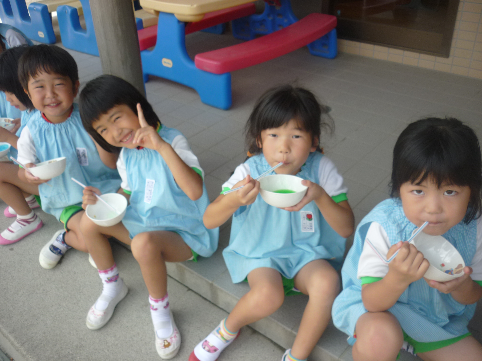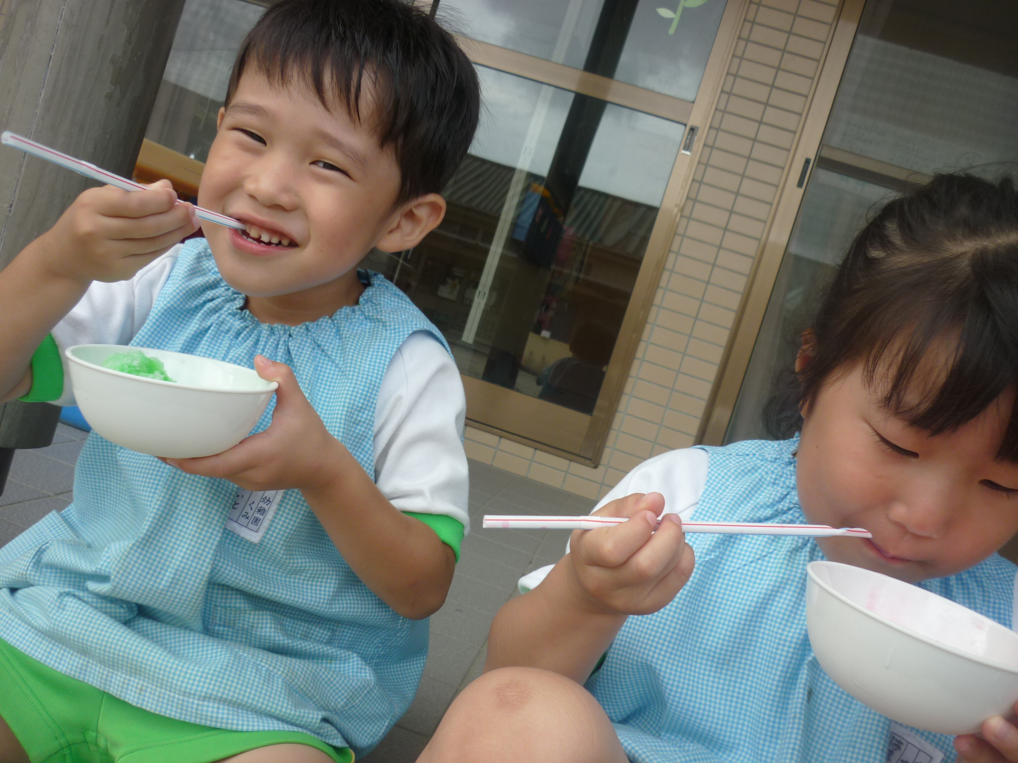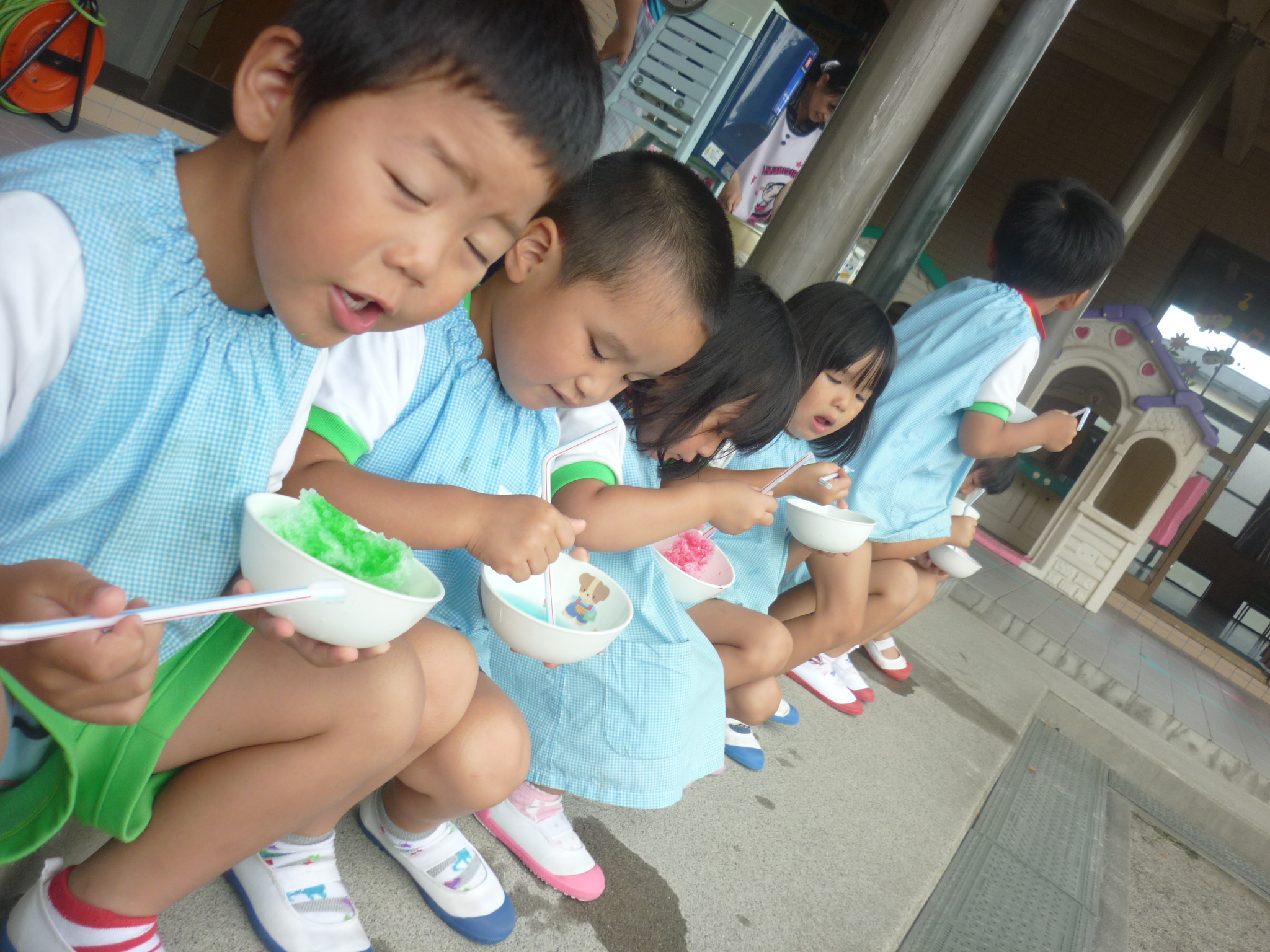 みんなで冷たいかき氷を食べたり、シャボン玉を使った制作をしたり