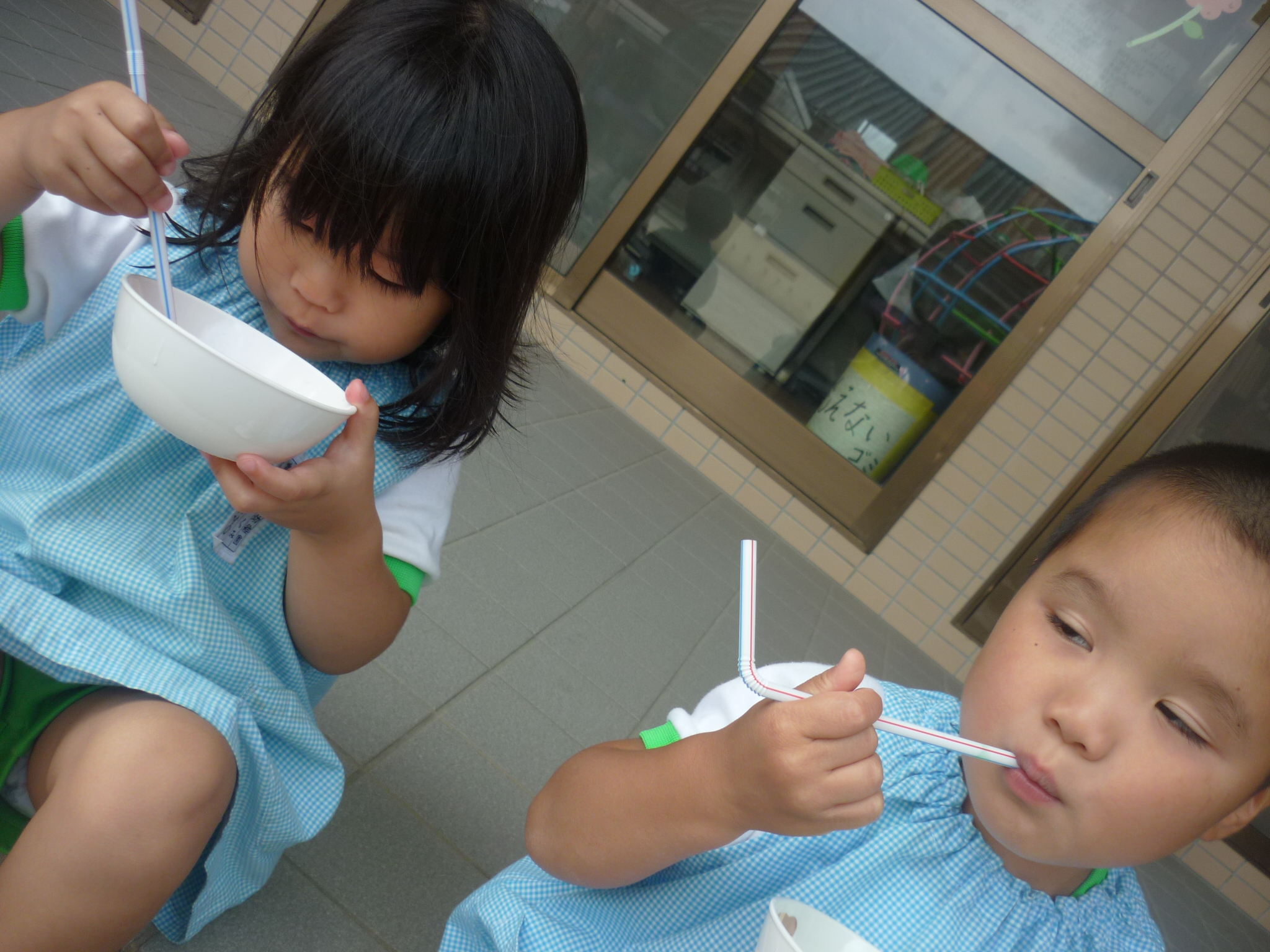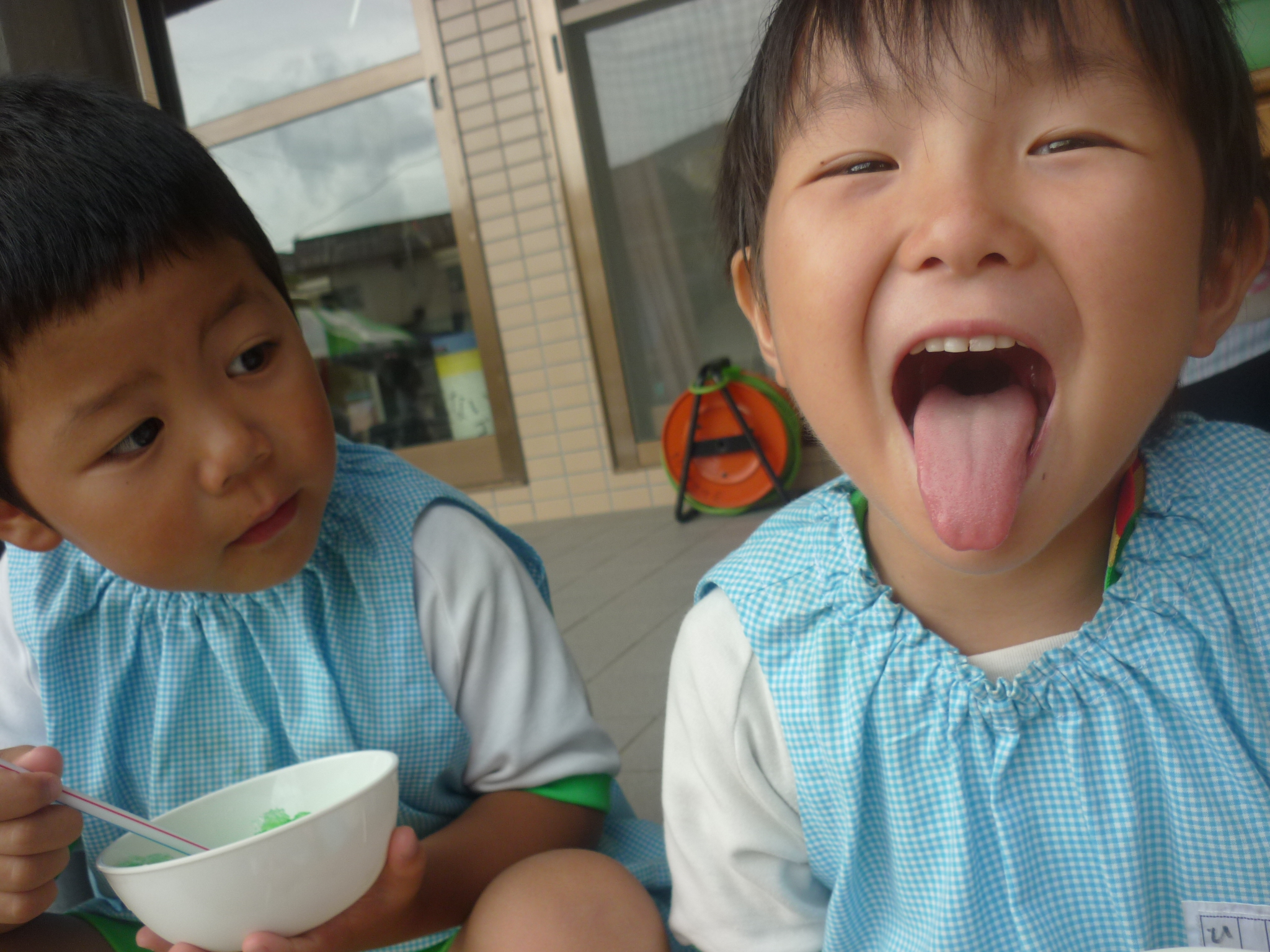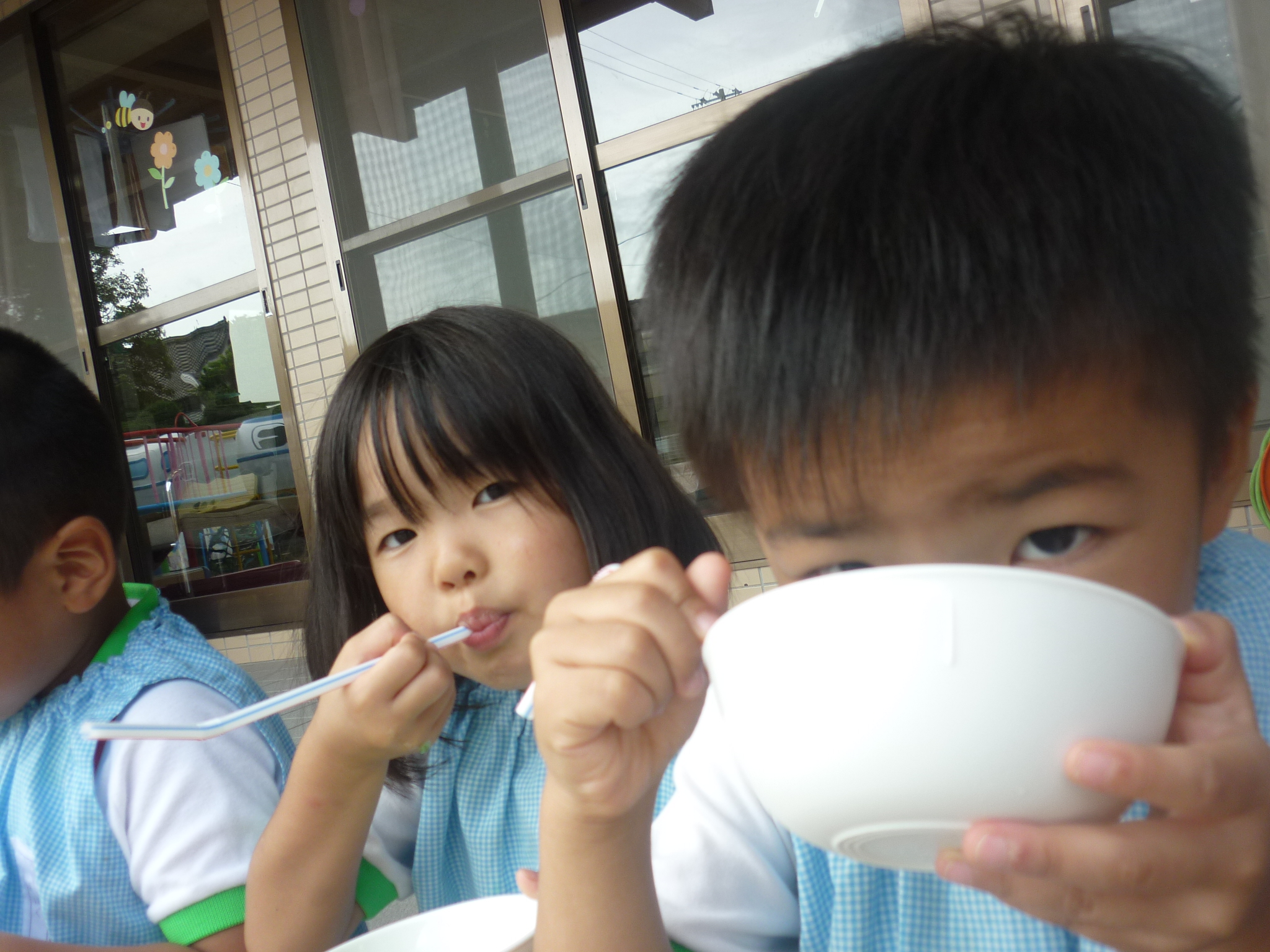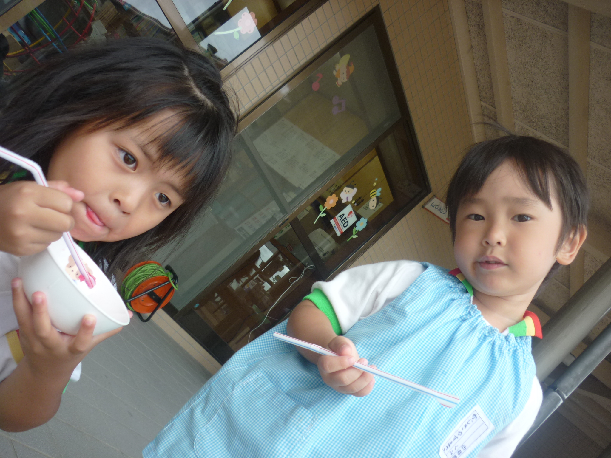 みんなで冷たいかき氷を食べたり、シャボン玉を使った制作をしたり