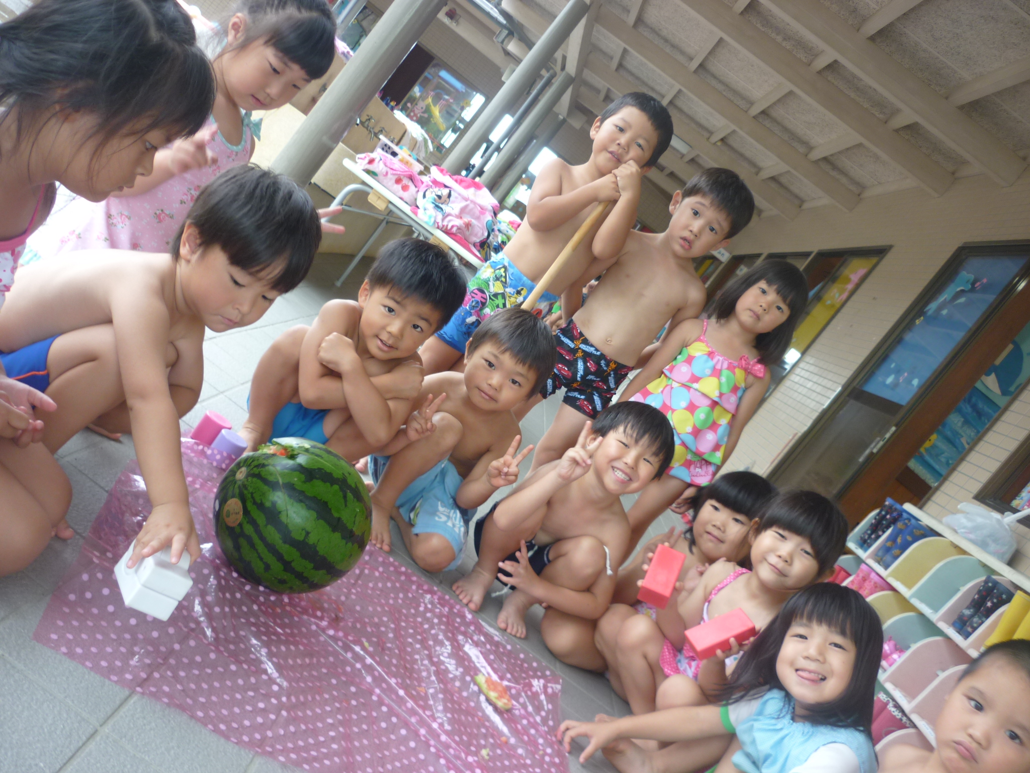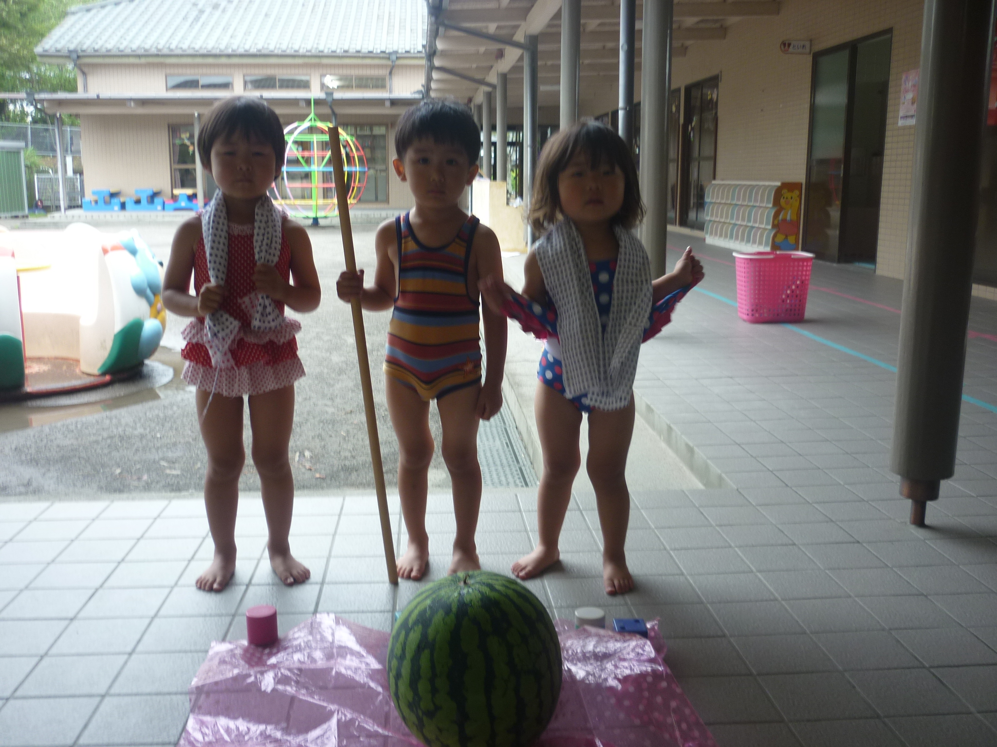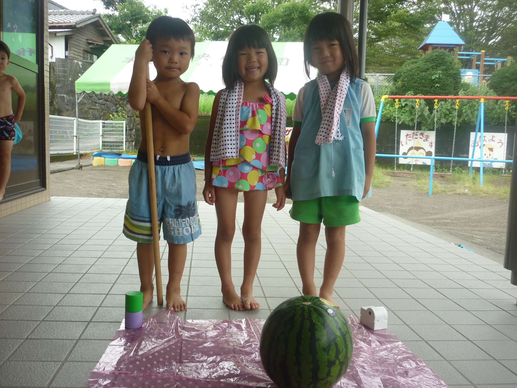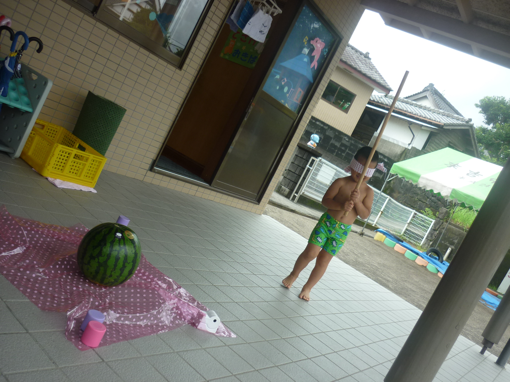 そして今日はスイカ割りをして、おいしいスイカをたくさん食べたりと