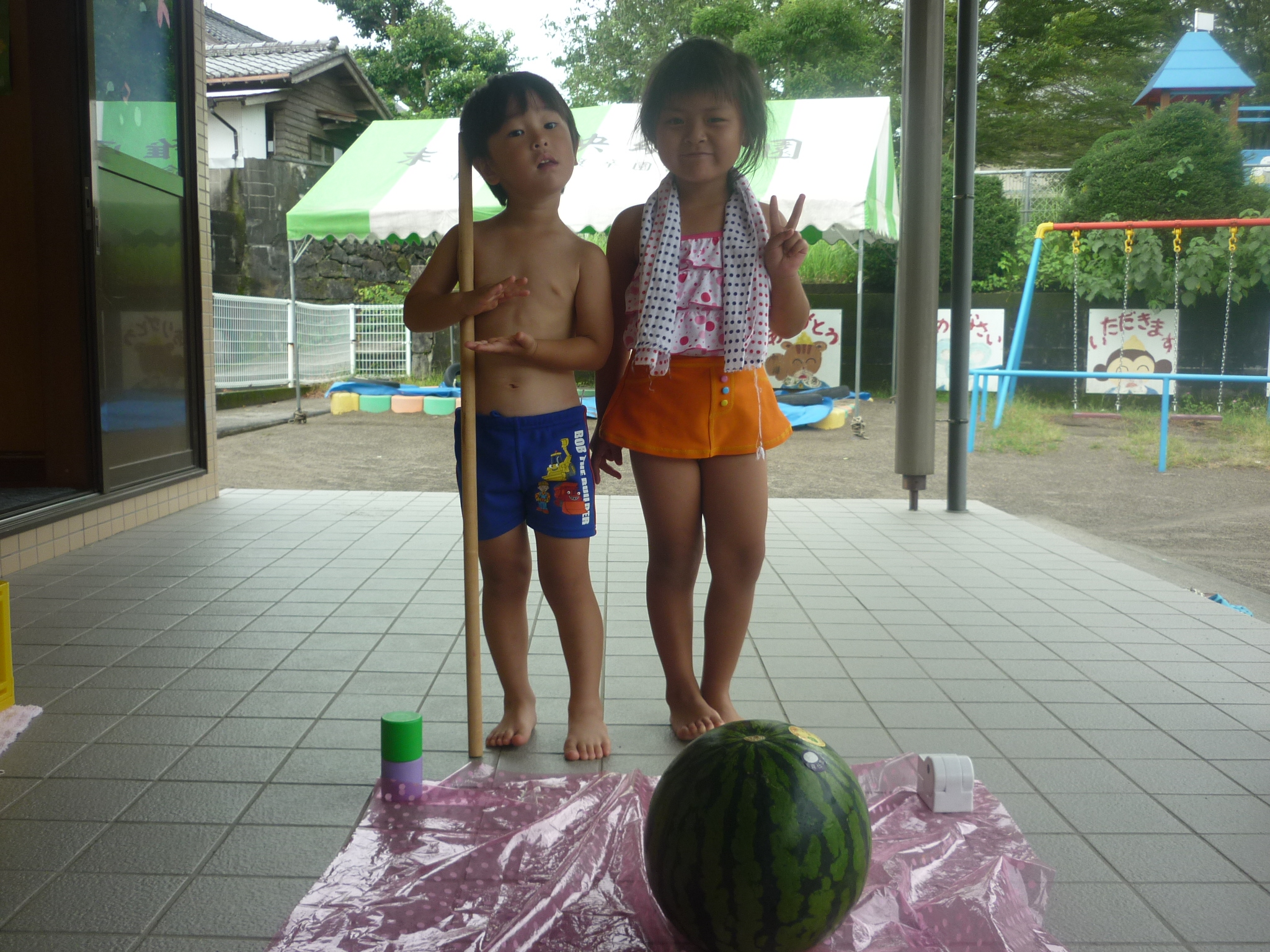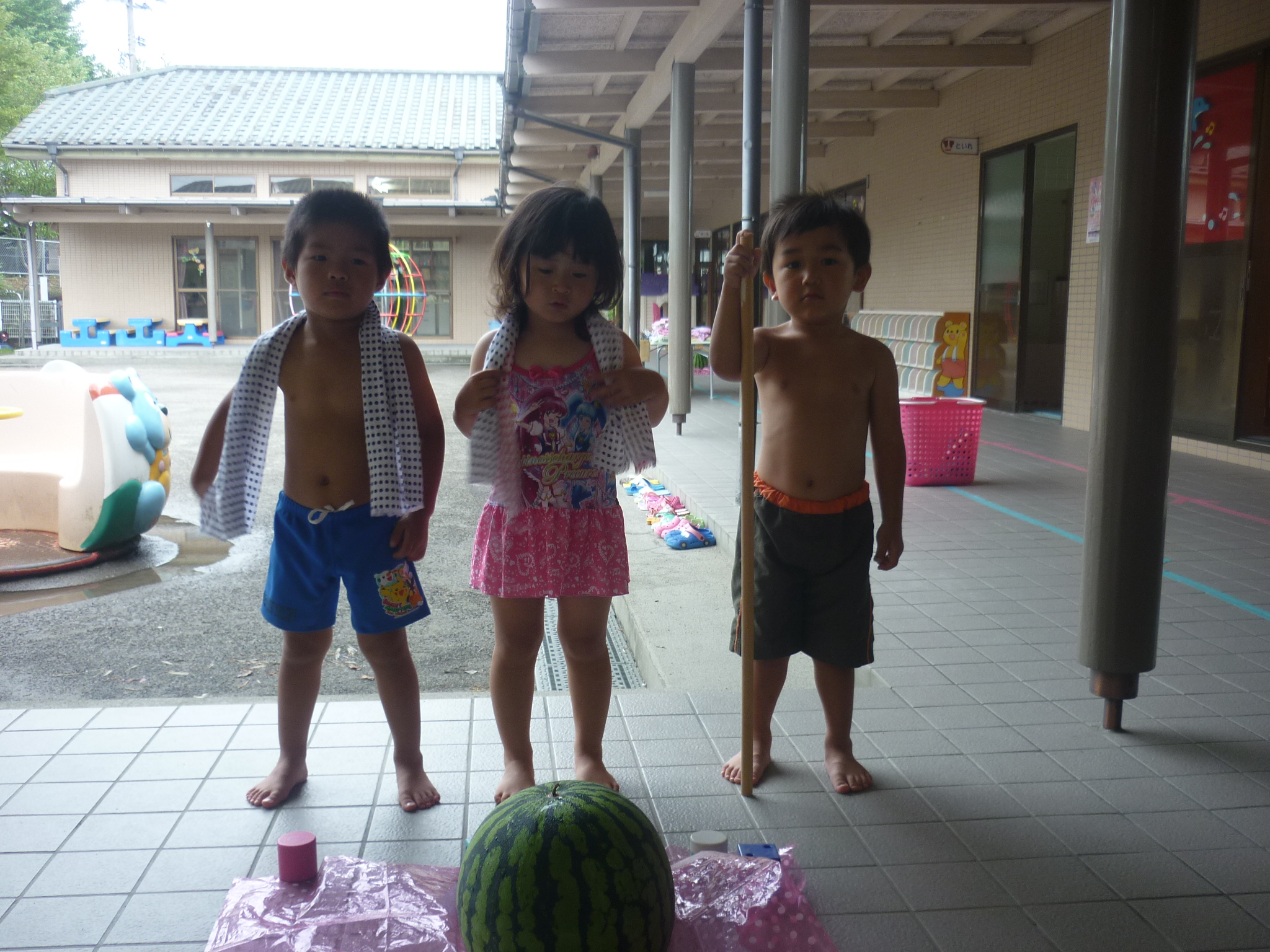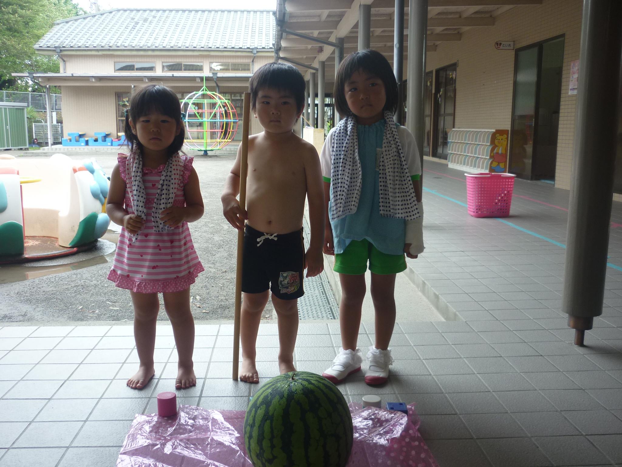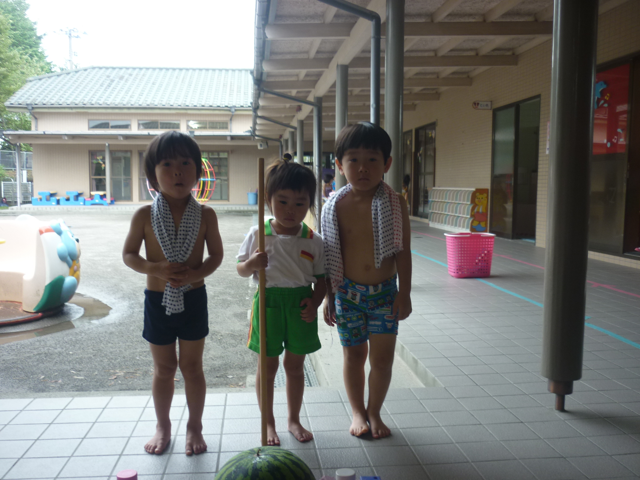 そして今日はスイカ割りをして、おいしいスイカをたくさん食べたりと