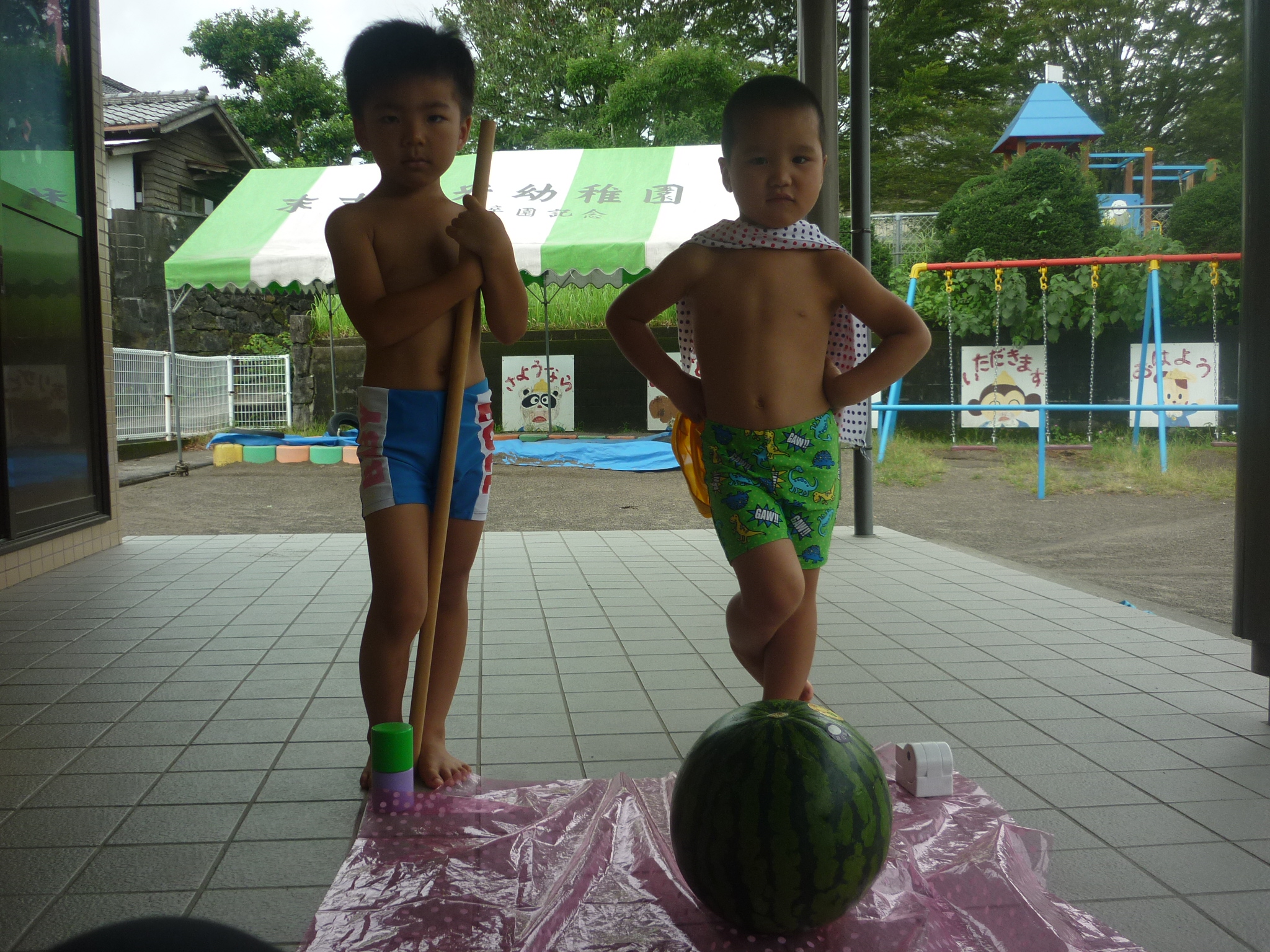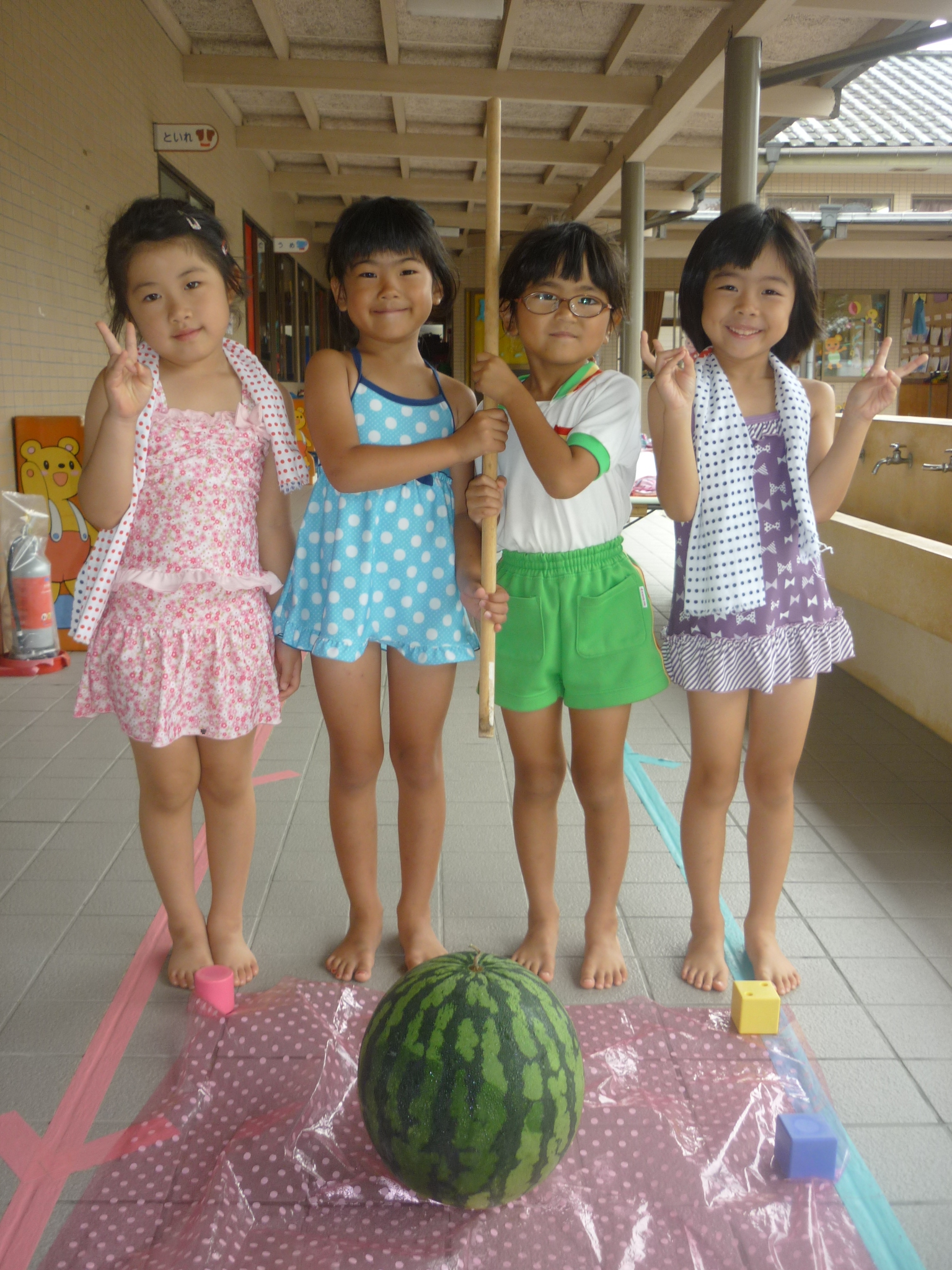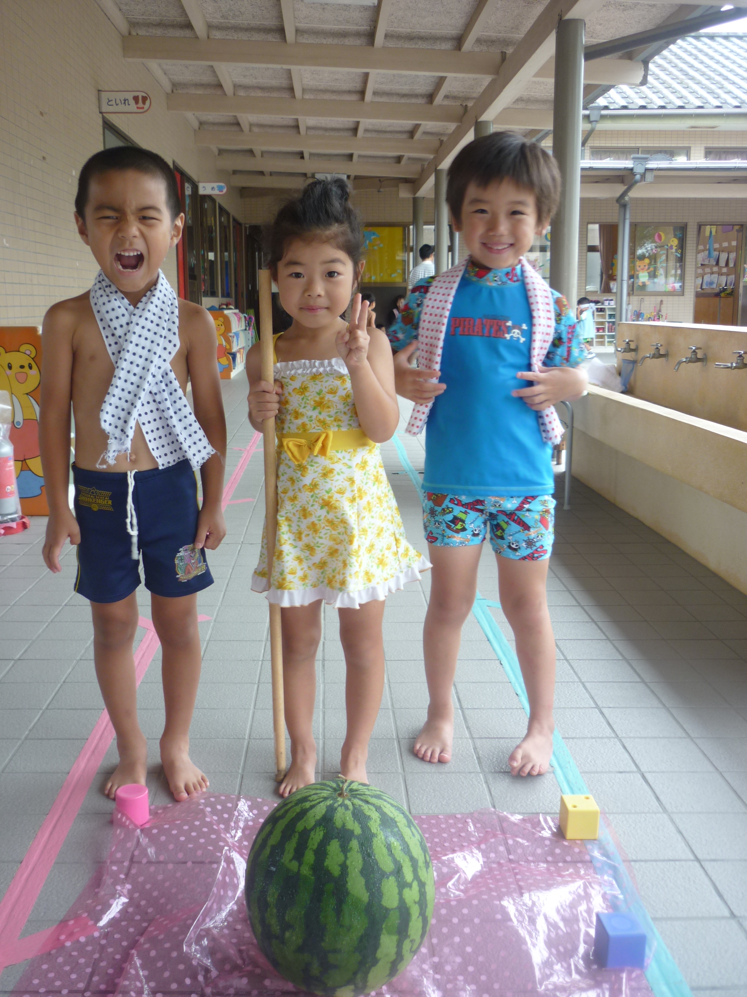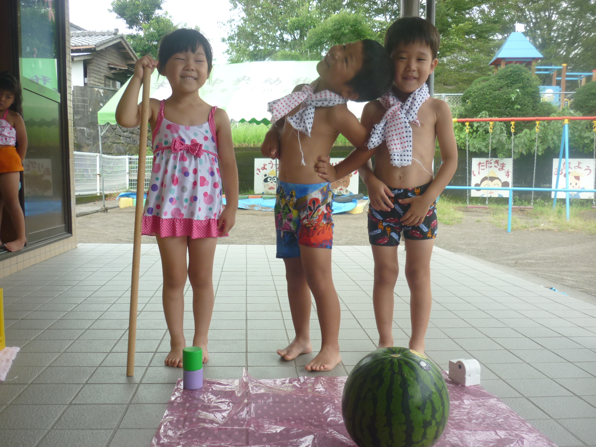 そして今日はスイカ割りをして、おいしいスイカをたくさん食べたりと