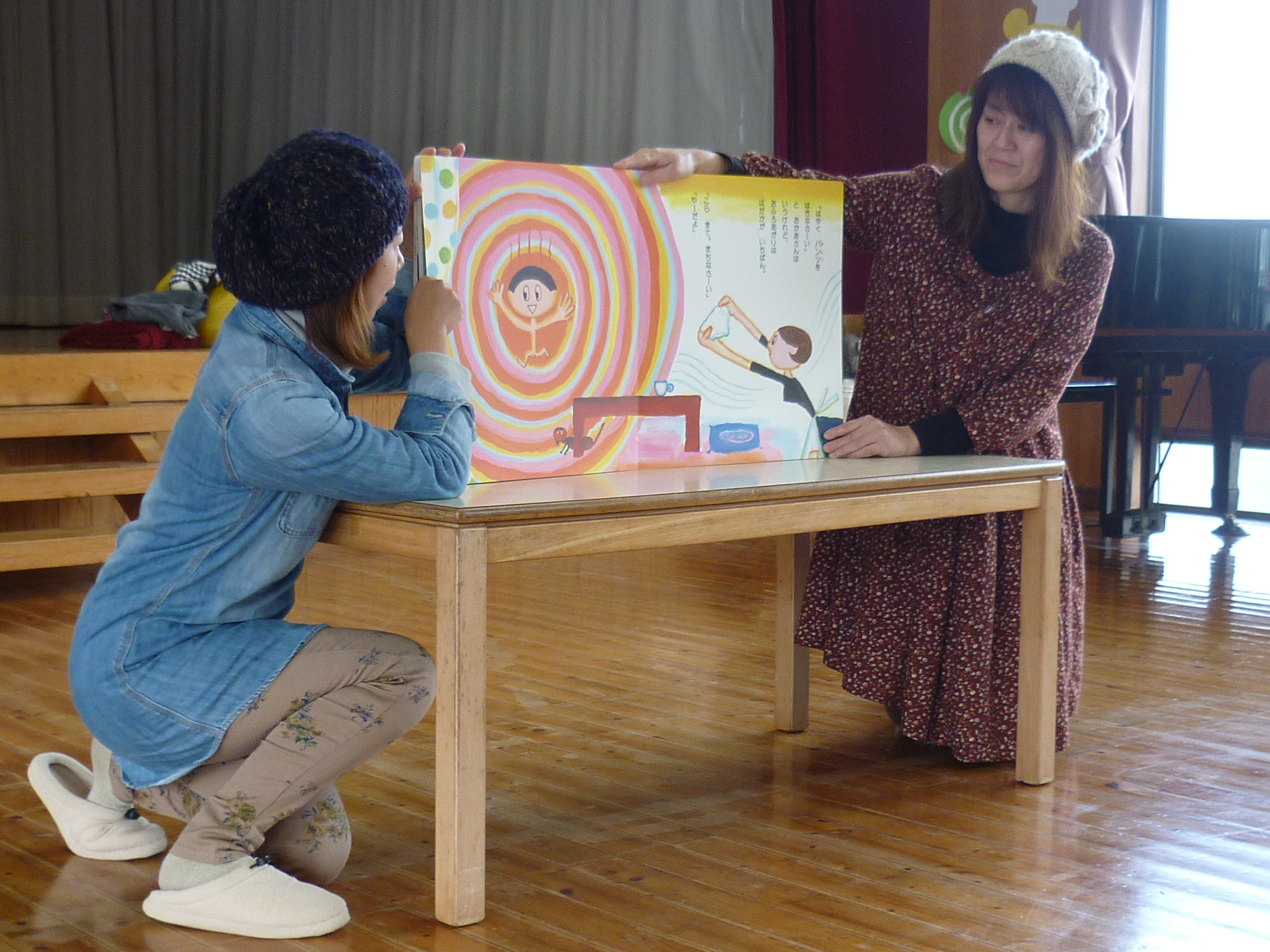 今回は読み聞かせの会「たんぽぽ団」のお母様方に絵本を読んでいただき