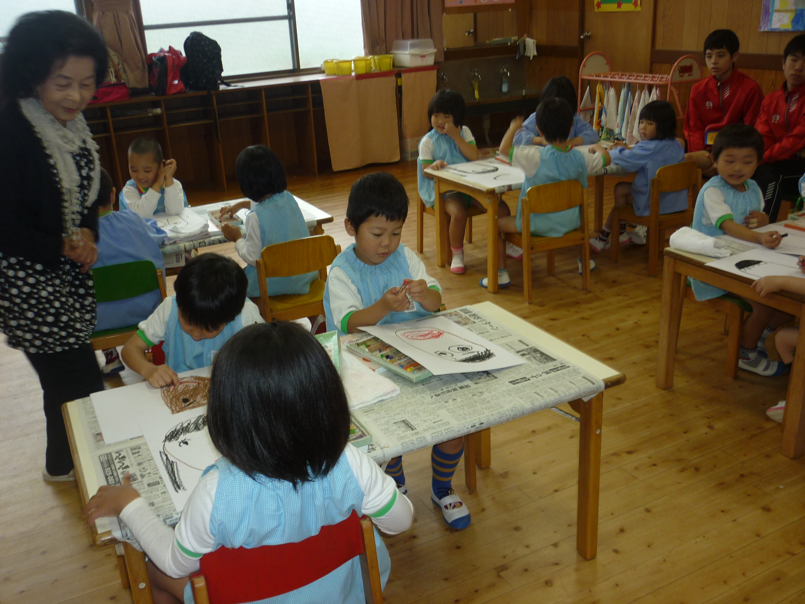年長さんにとっては初めてとなる絵画教室。