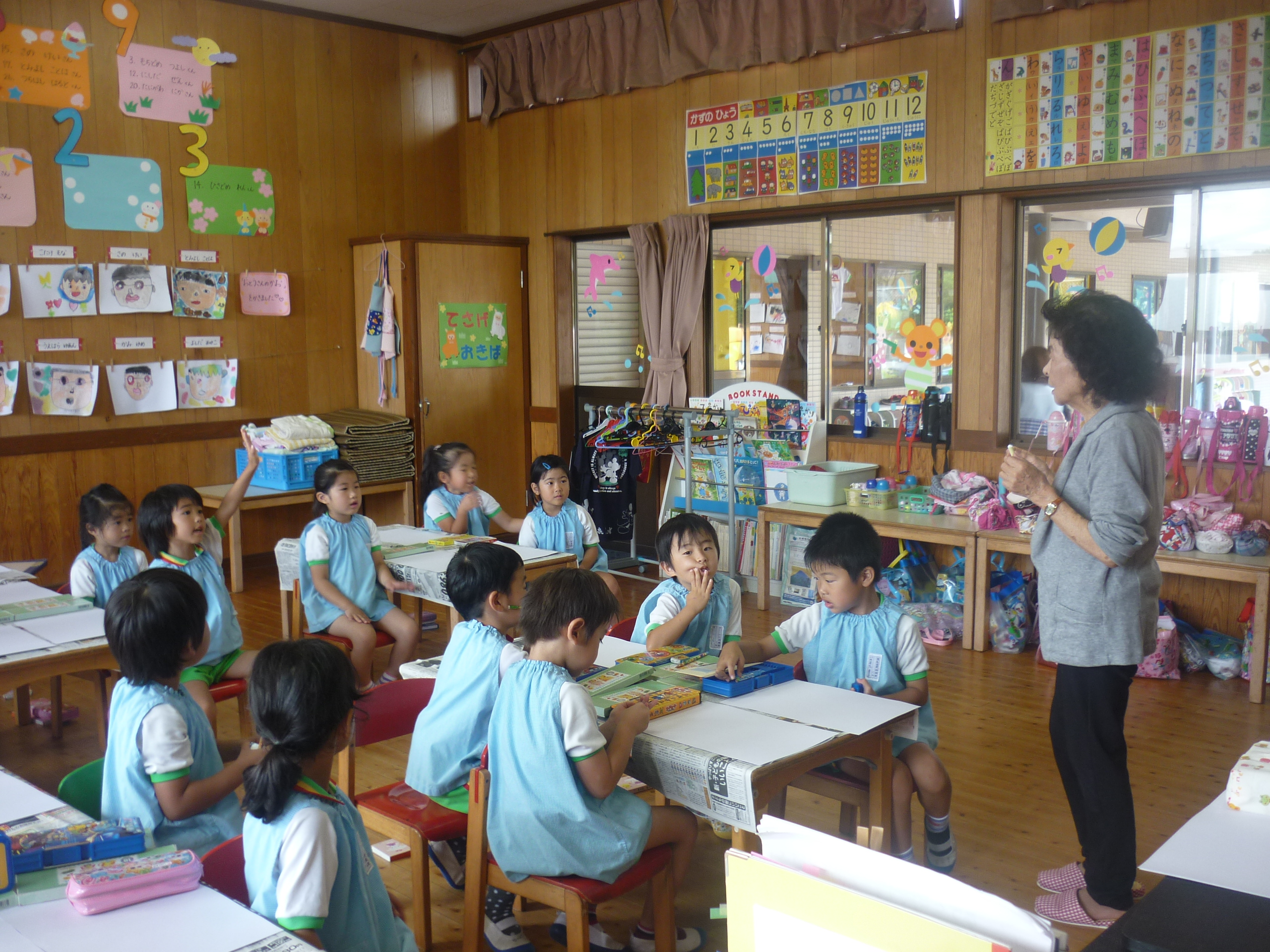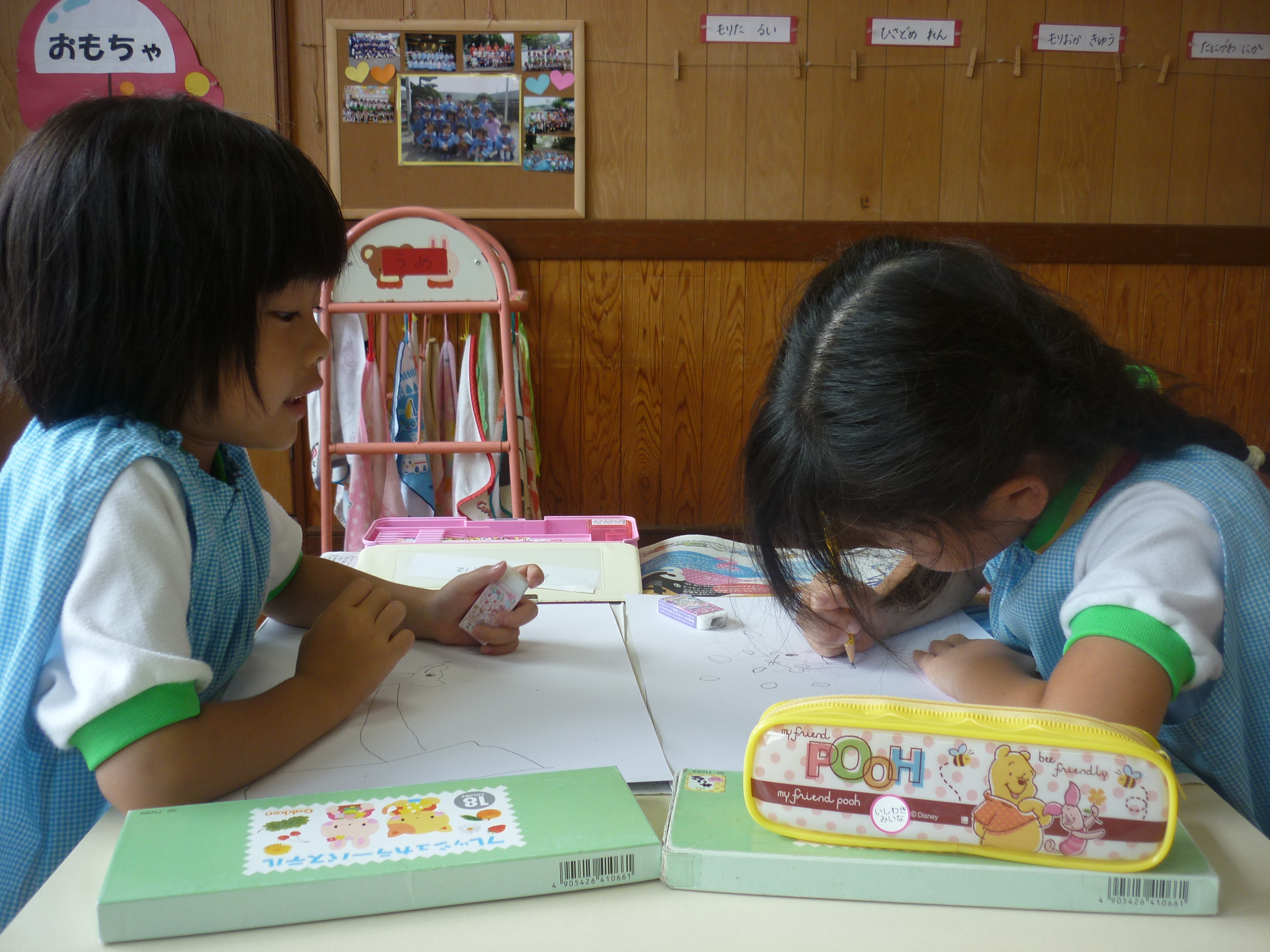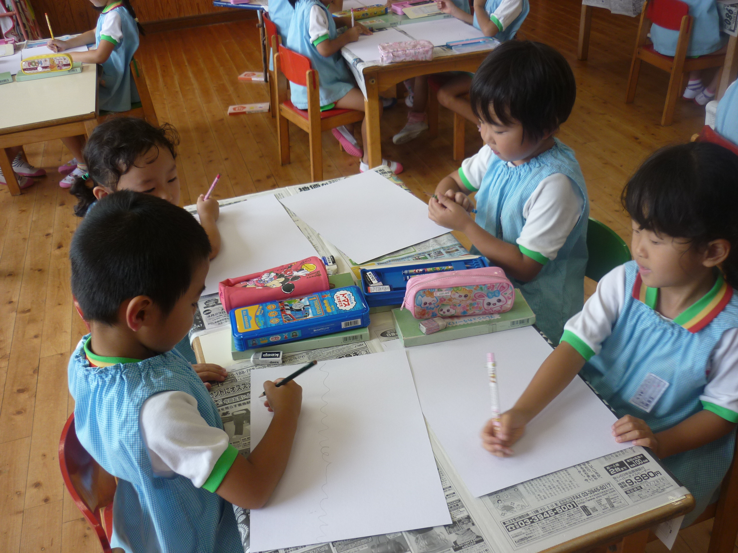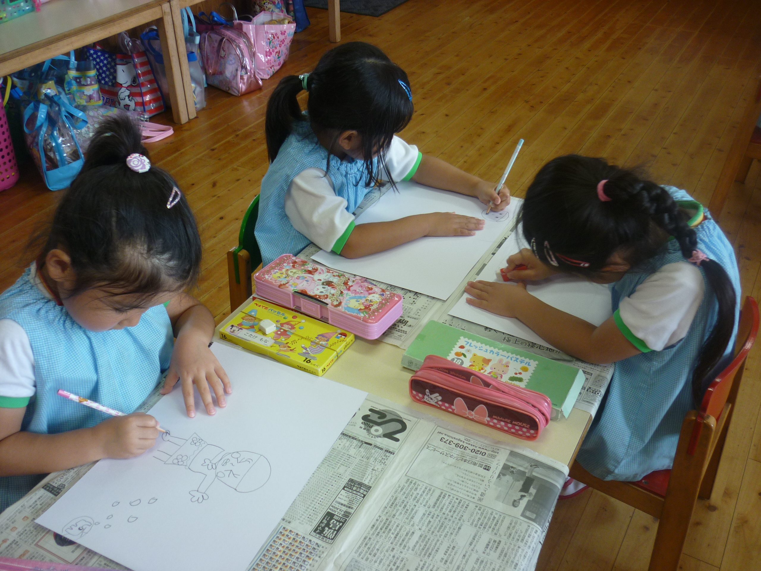 絵画教室でした [2014年07月11日] 8日(火)は月に一度の絵画教室でした。 今回のテーマは「みずあそび」ということで、 児玉先生のお話をとても真剣に聞きながら プールあそびの様子をのびのびと描く子ども達。 すごい集中力でした。 今回もとてもにぎやかでユニークな 個性あふれるすばらしい絵が仕上がりました。 うめ組の部屋の後ろに掲示してありますので ぜひご覧くださいね! ◎一覧を表示する ◎管理者