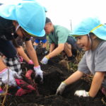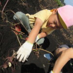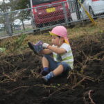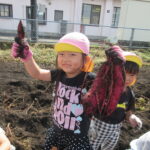 今回は、初めて白鳥保育園すぐ隣の芋畑での芋掘りでした。