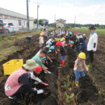 芋畑を提供してくださった青山さん、保育園のお友達と先生方