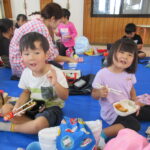 また、収穫後は保育園のホールを借りてみんなでお弁当を食べたり